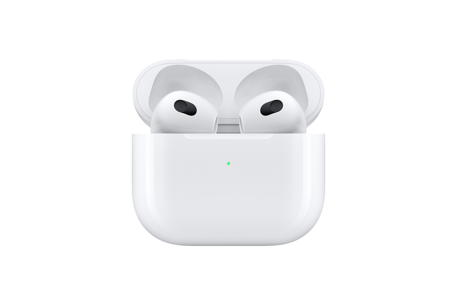 Totalmente novos e com áudio espacial. Design totalmente novo. São leves e adaptam‑se na perfeição ao ouvido. Os AirPods de terceira geração têm mais uma hora de autonomia do que a versão anterior. Com graves mais profundos e agudos mais cristalinos, a música ganha toda uma nova dimensão.