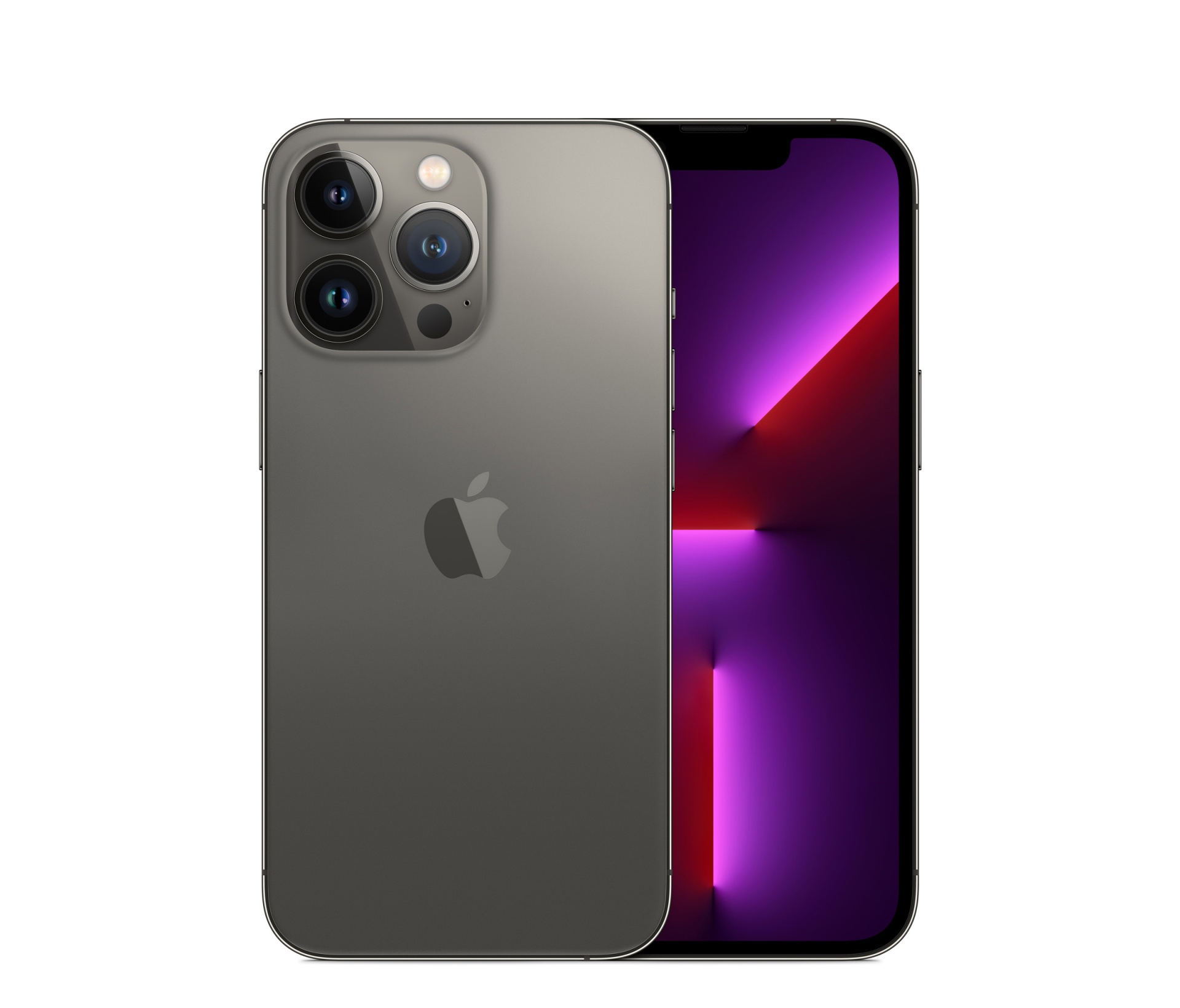 Frente e trás de um iPhone cinza escuro com câmera tripla