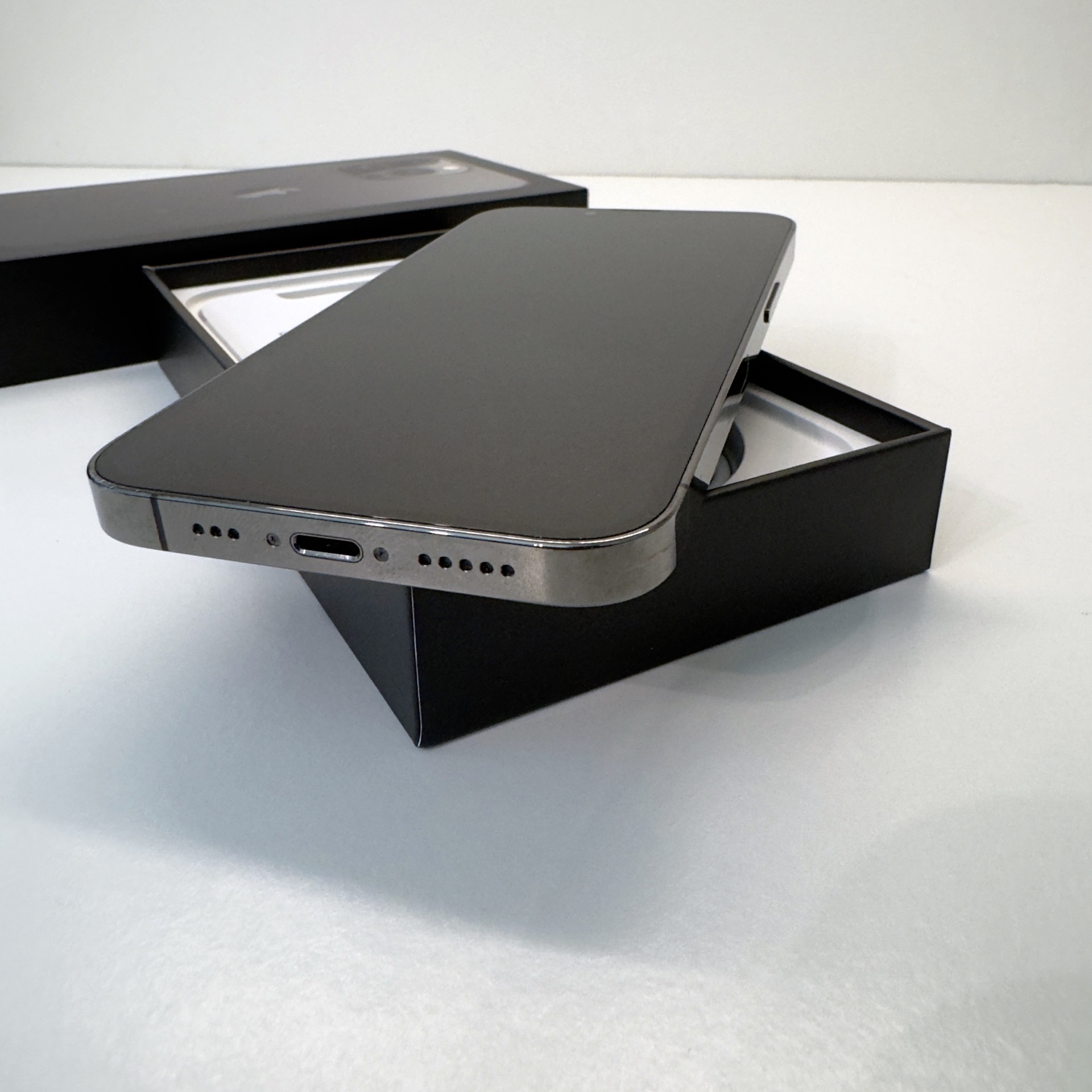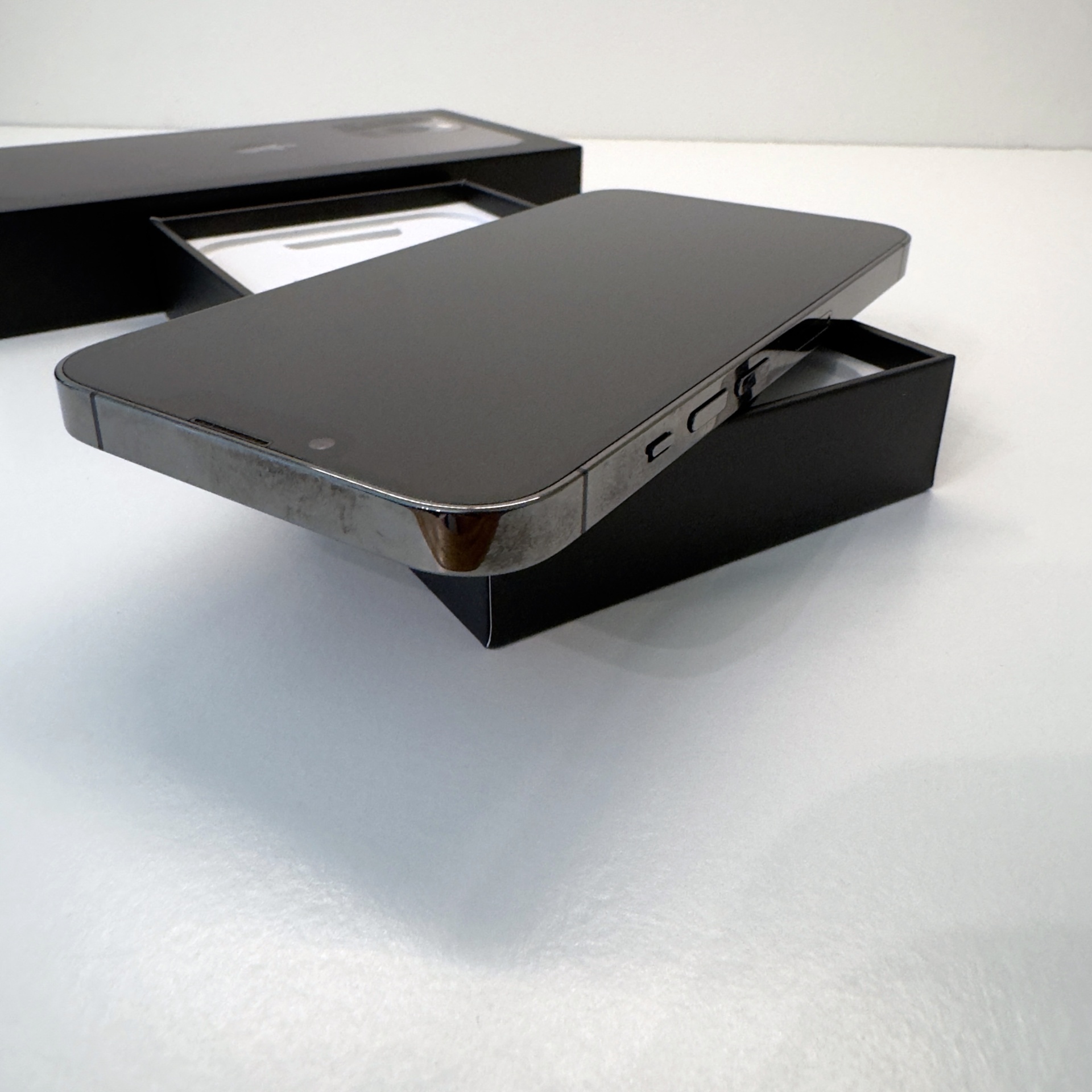 Frente e trás de um iPhone cinza escuro com câmera tripla Traseira de smartphone cinza com três câmaras circulares e flash LED Smartphone cinza visto de perfil com câmara dupla Smartphone preto com três câmaras na caixa aberta Smartphone moderno de ecrã preto com moldura metálica numa caixa preta numa superfície branca Smartphone cinzento escuro com bordas prateadas em caixa preta Smartphone cinzento escuro com três câmaras e caixa preta Smartphone Apple iPhone com ecrã ligado e embalagem