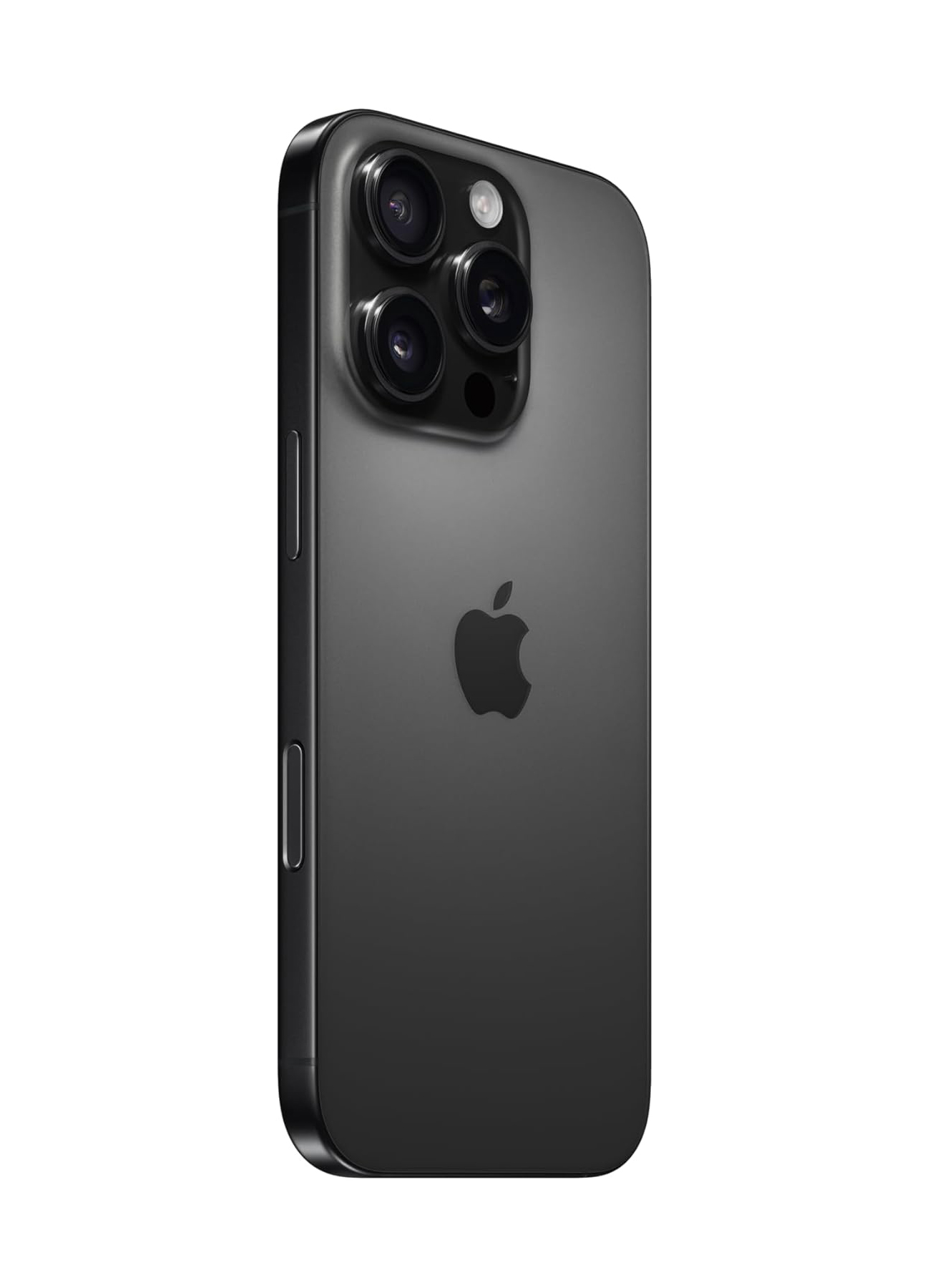 Smartphone Apple iPhone preto com câmara tripla e ecrã frontal escuro com formas geométricas azuis Smartphone Apple iPhone preto com três câmaras traseiras Smartphone preto com ecrã escuro e botão lateral iPhone 16 Pro preto e cabo USB-C branco sob texto Cinco iPhones em várias cores alinhados, mostrando câmaras e ecran frontal Montagem promocional de um telemóvel com funcionalidades e chip A18 Pro da Apple