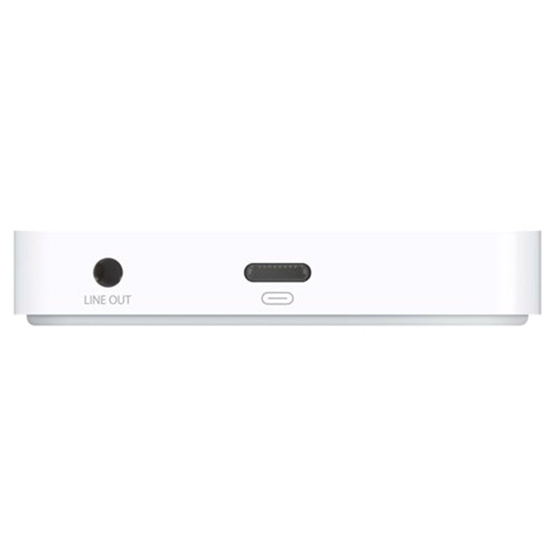 - Ligue auscultadores ou colunas com alimentação independente à base através de um conetor de áudio de 3,5 mm para ouvir música durante a sincronização e o carregamento.
