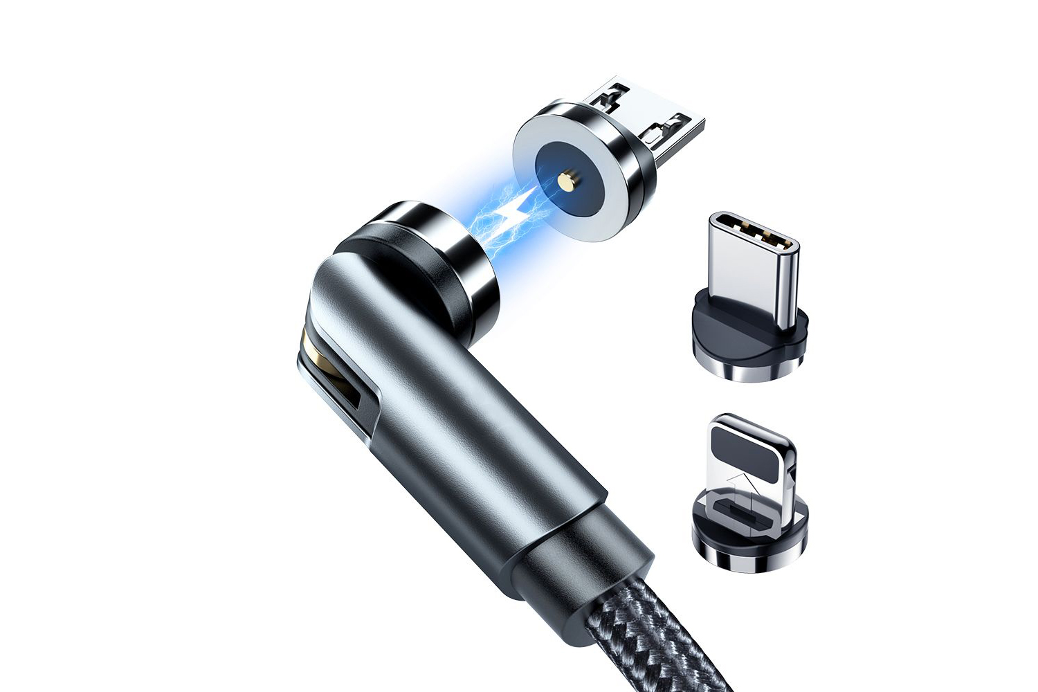 Cabo 3-em-1 Nylon Magnético 360º Rixus USB para Lightning/USB-C/Micro-USB
