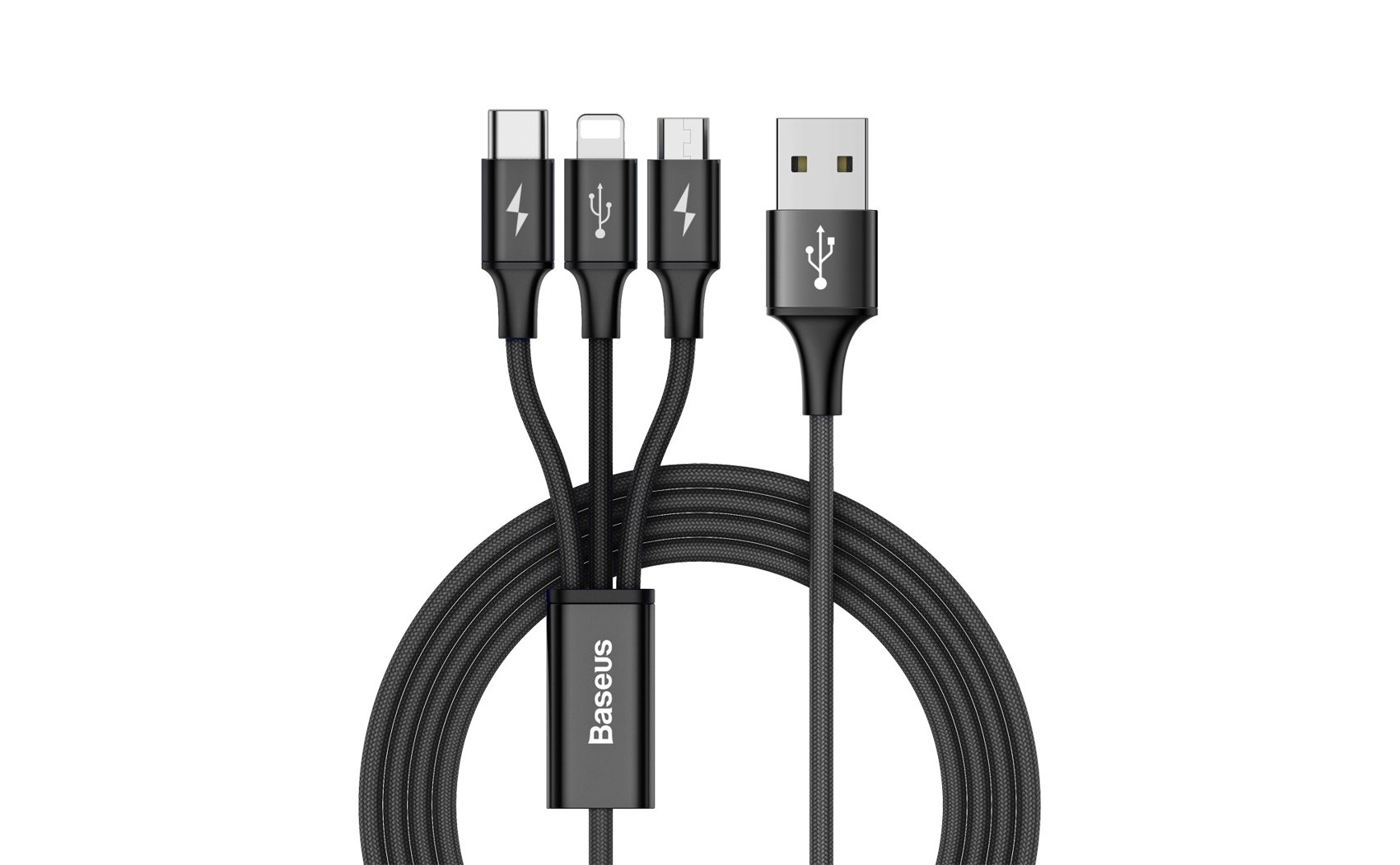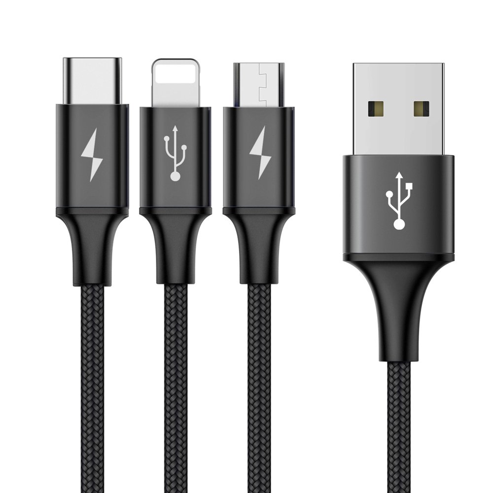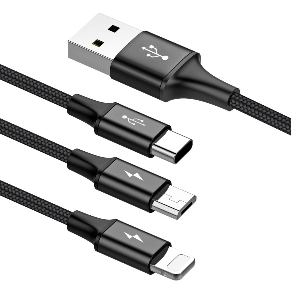 Cabo 3-em-1 Nylon Baseus Rapid - Lightning / USB-C / Micro-USB para USB