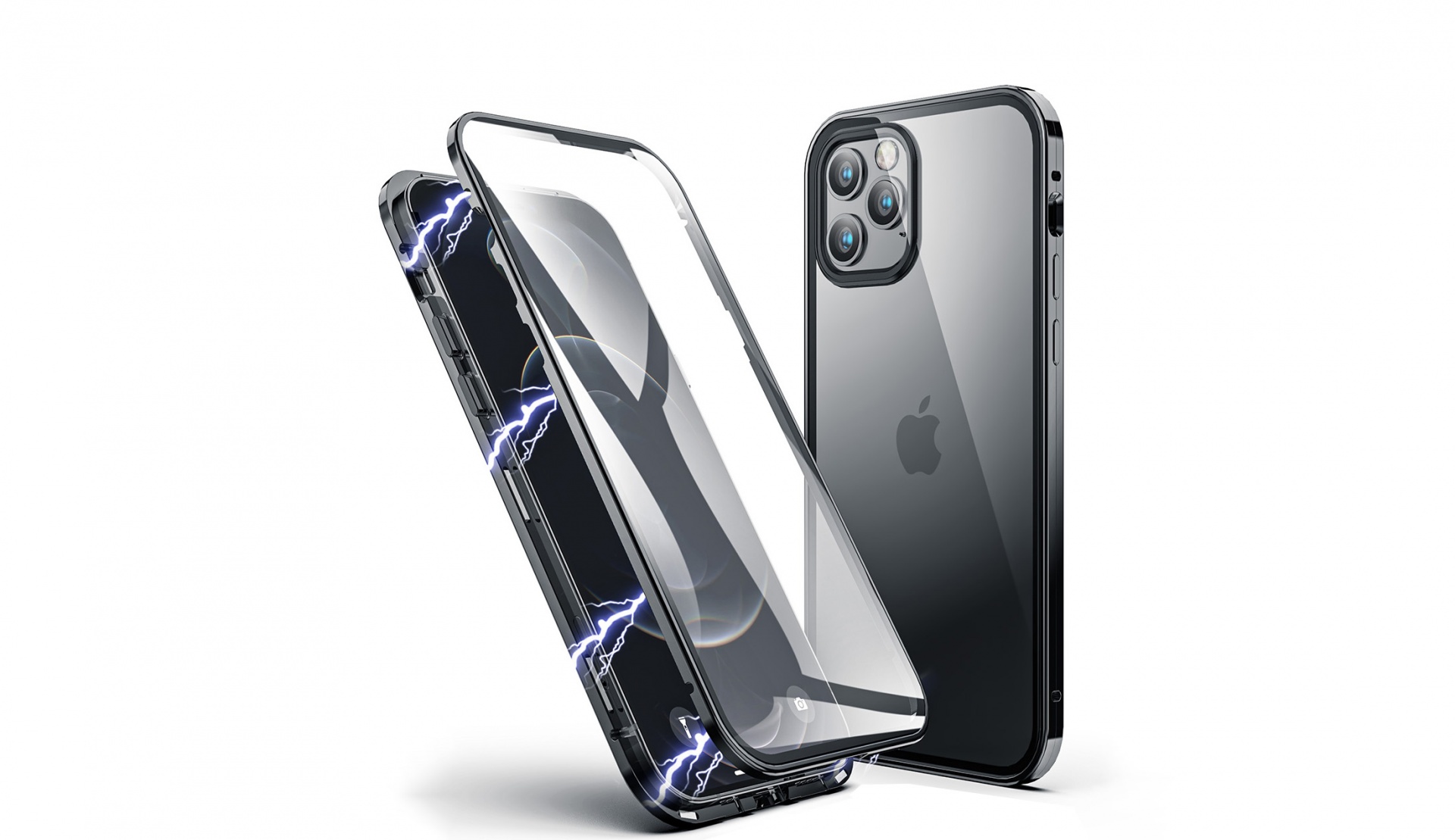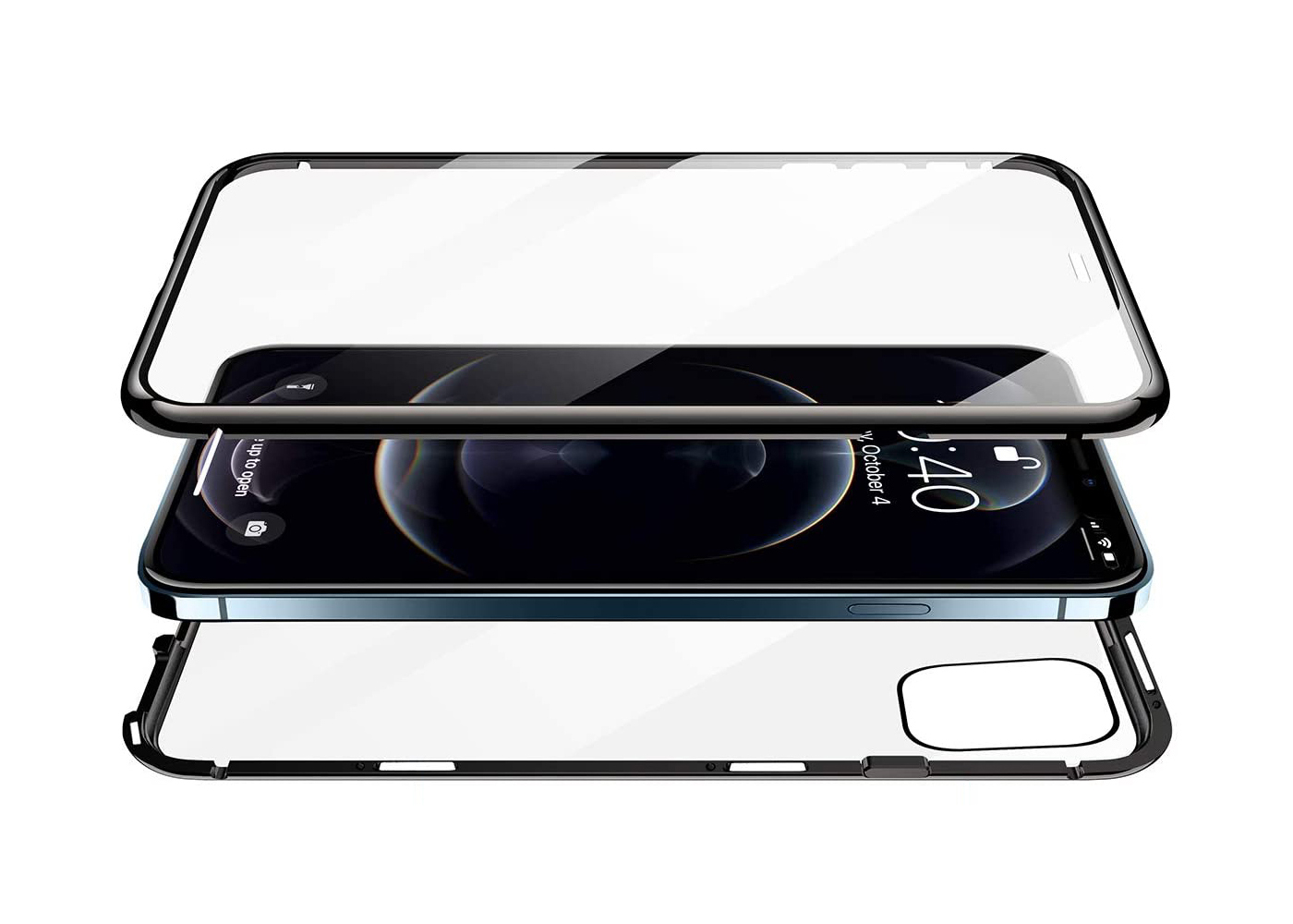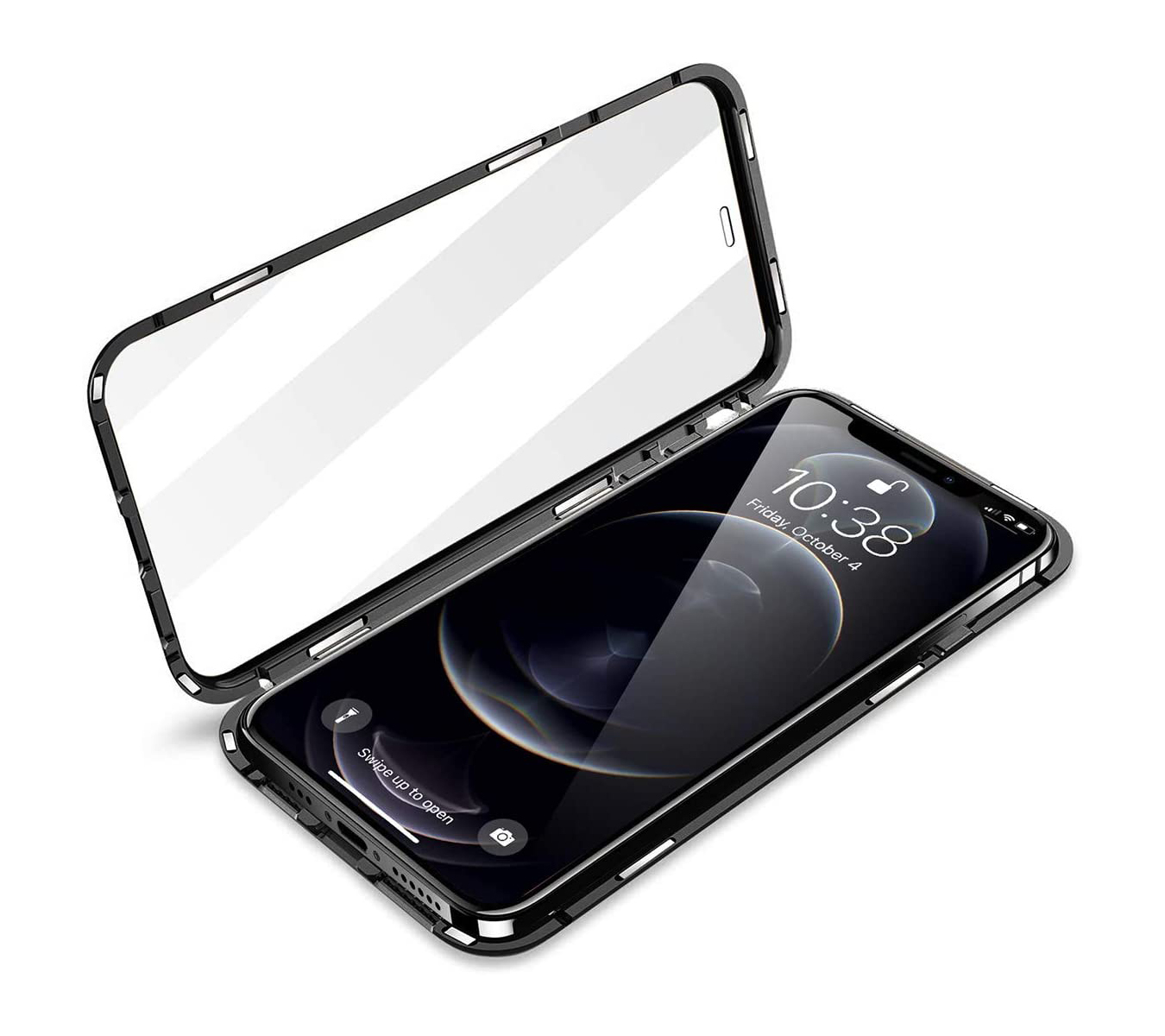É caracterizada por ter uma estrutura metálica de alta qualidade unida pelo magnetismo que envolve o iPhone na totalidade e ainda um vidro temperado para a capa traseira 100% transparente para a maior discrição.