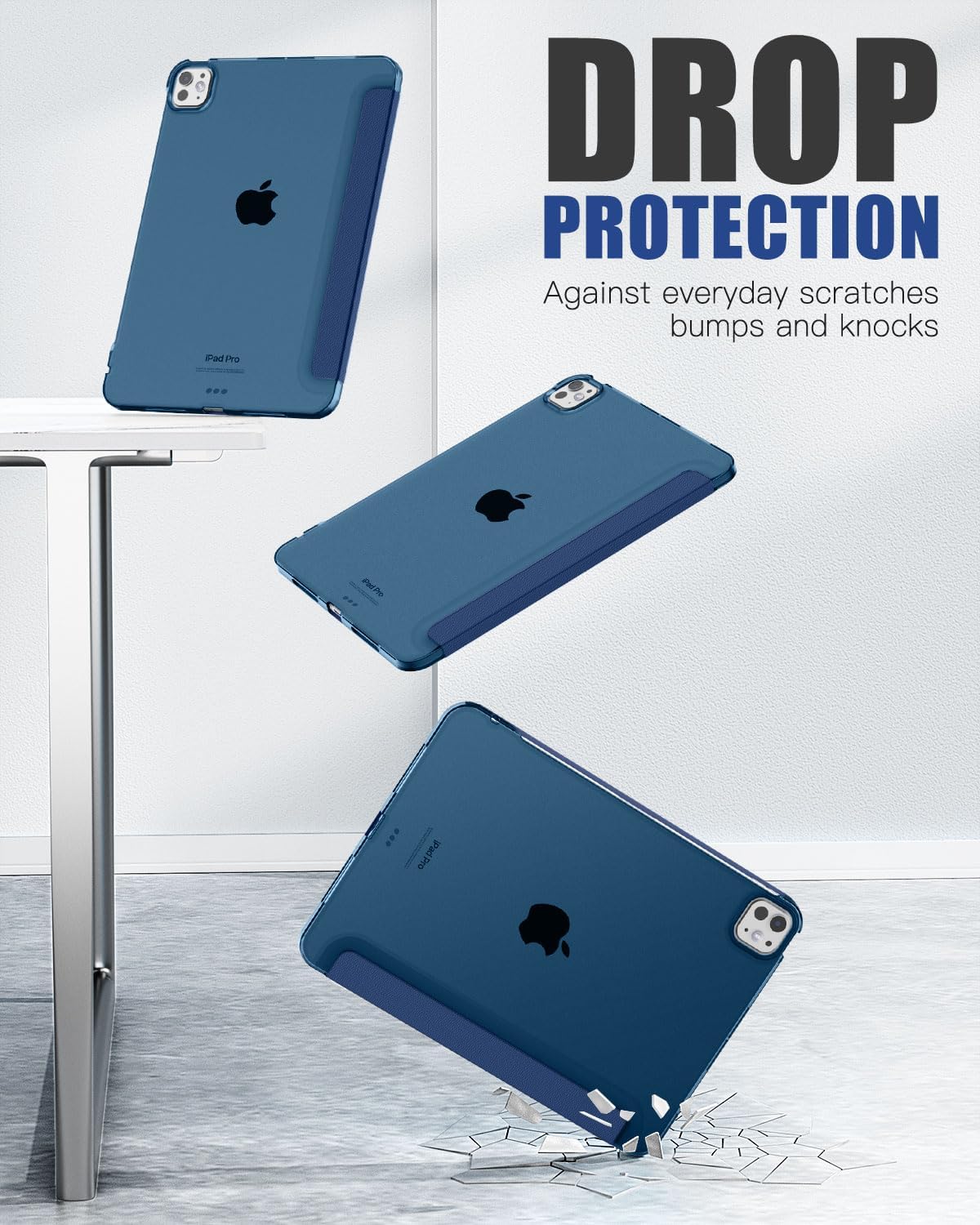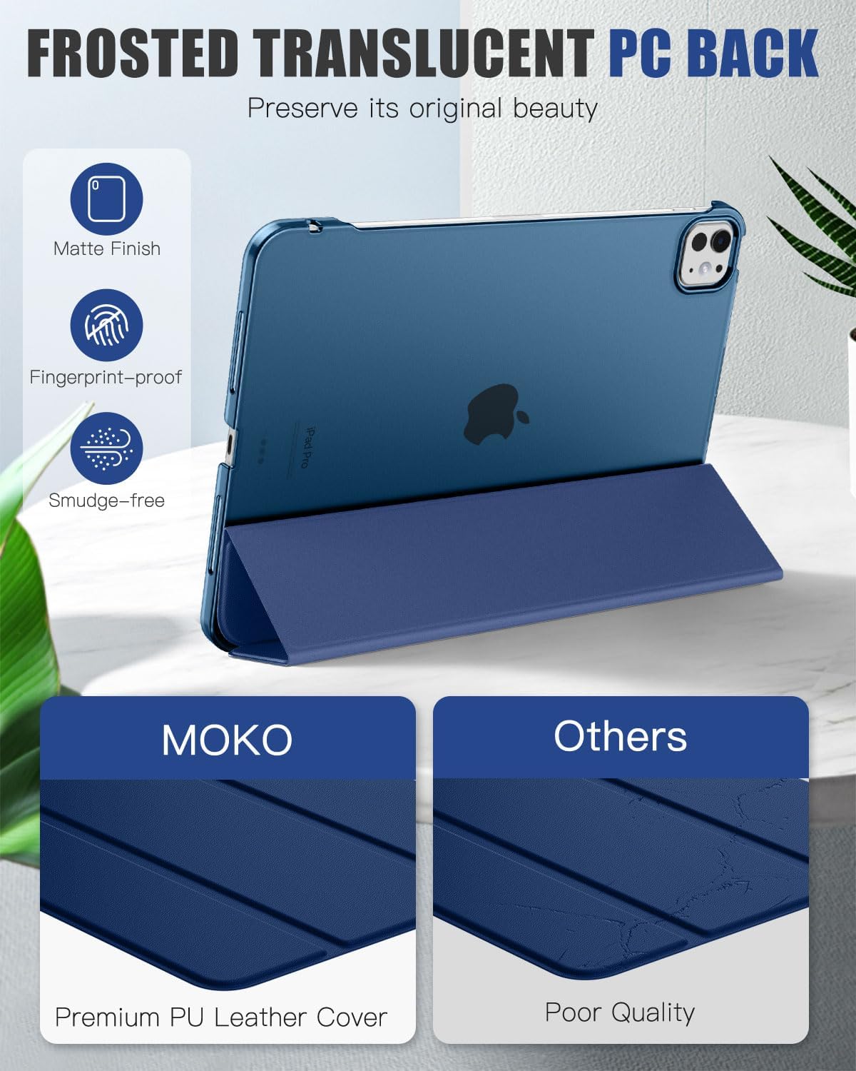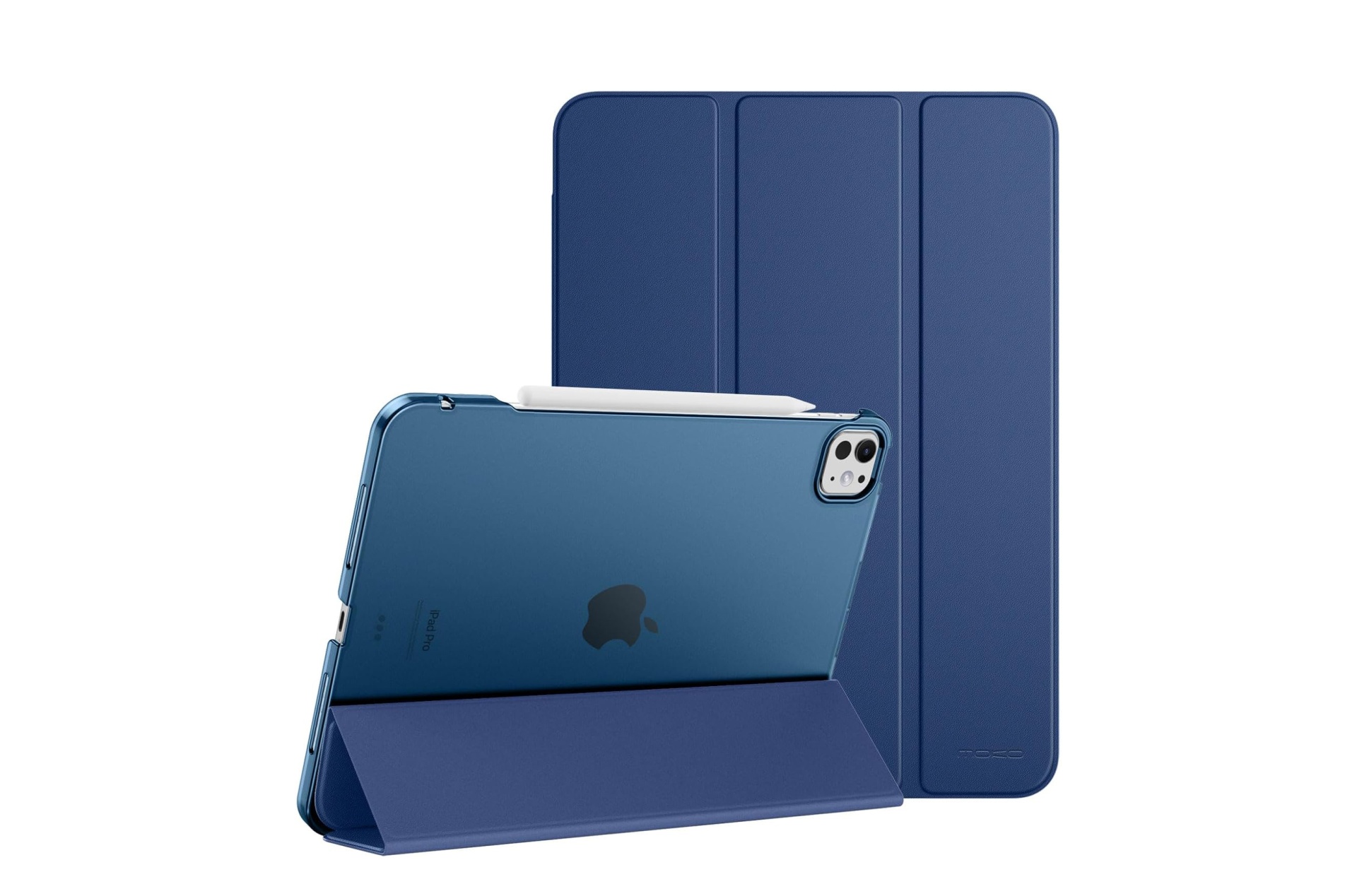 Fabricada com couro PU durável, interior em microfibra macia e capa traseira rígida em policarbonato translúcido fosco. Esta capa oferece proteção eficaz contra riscos, impactos, pó e impressões digitais, mantendo visível o design e os ícones do iPad.