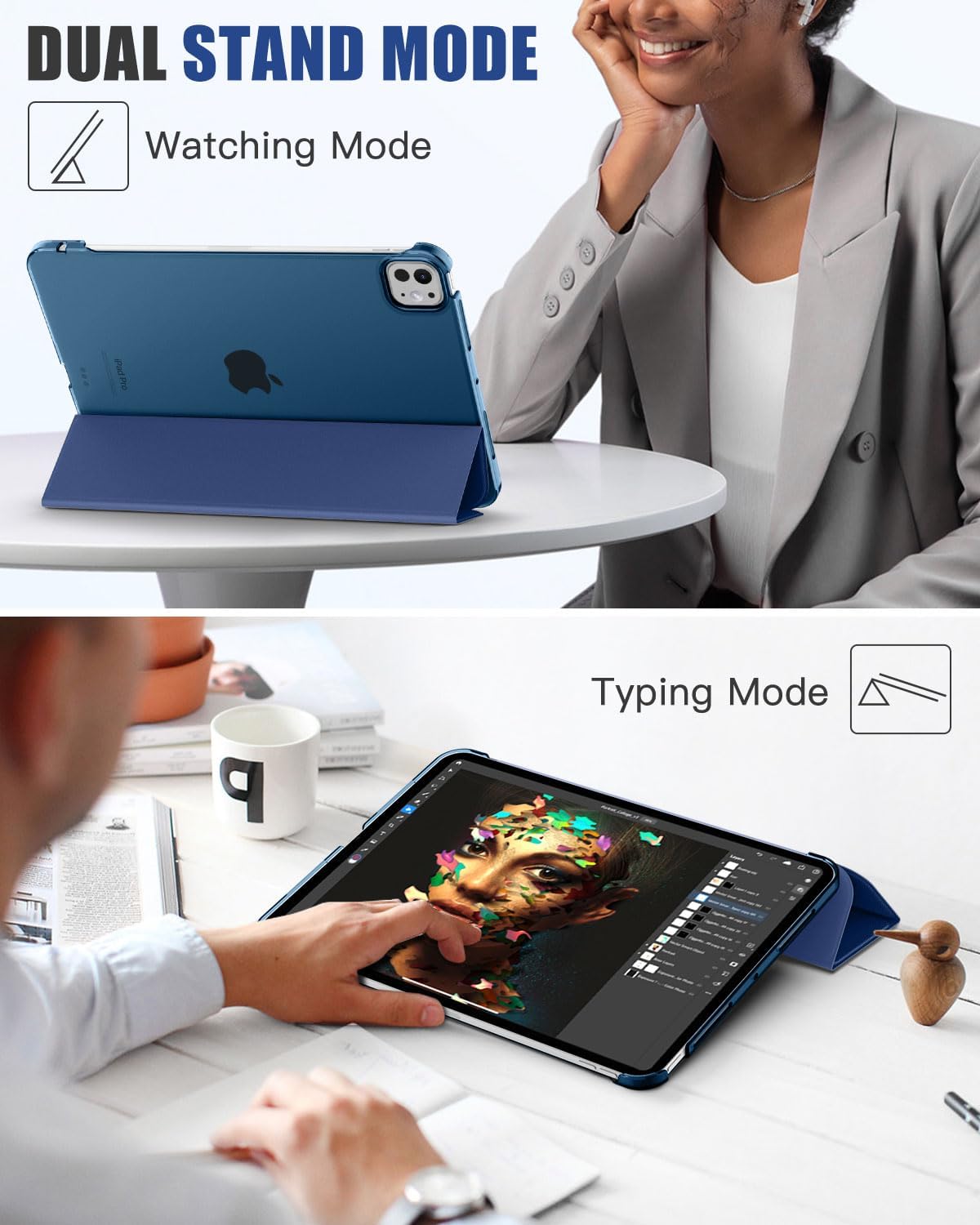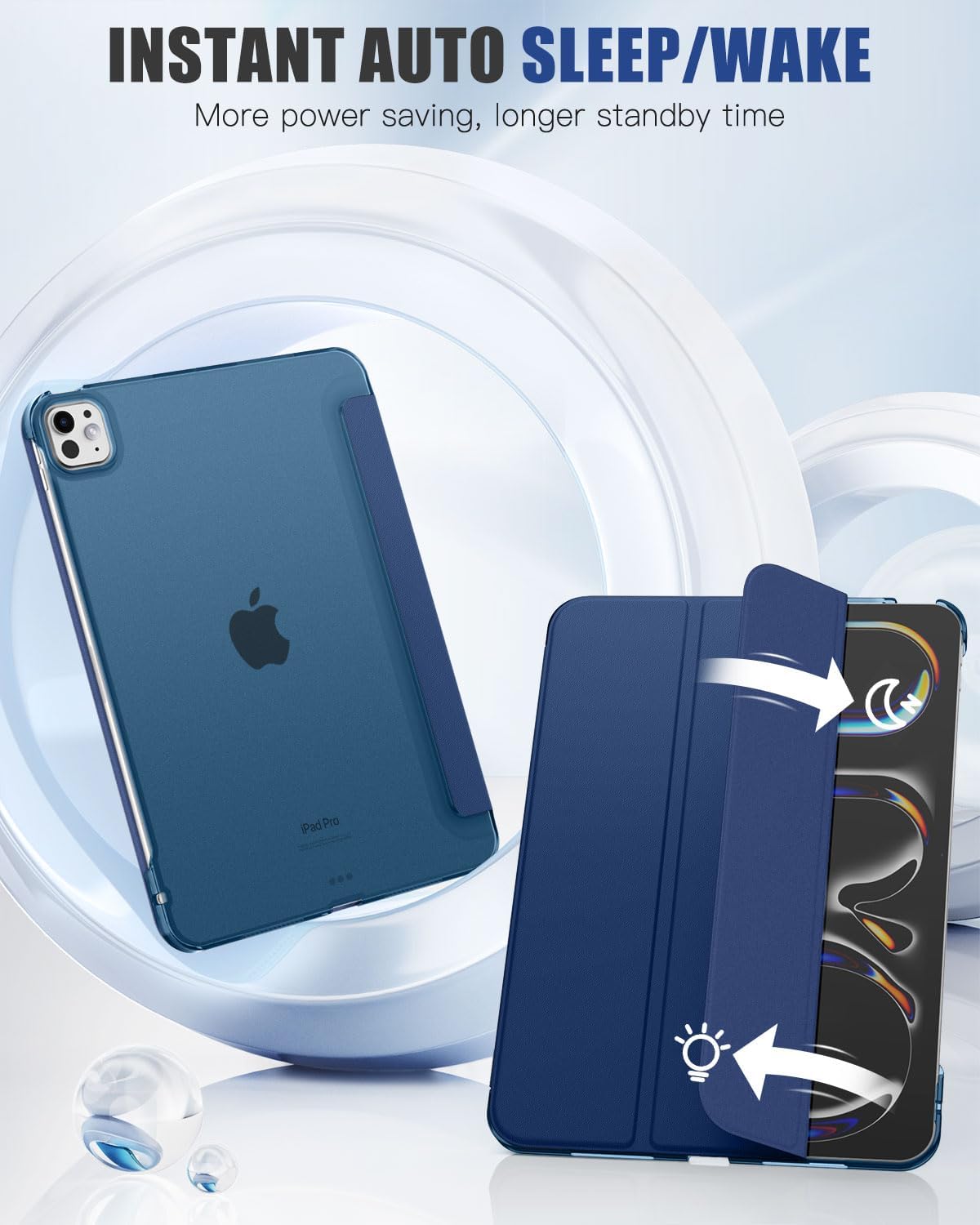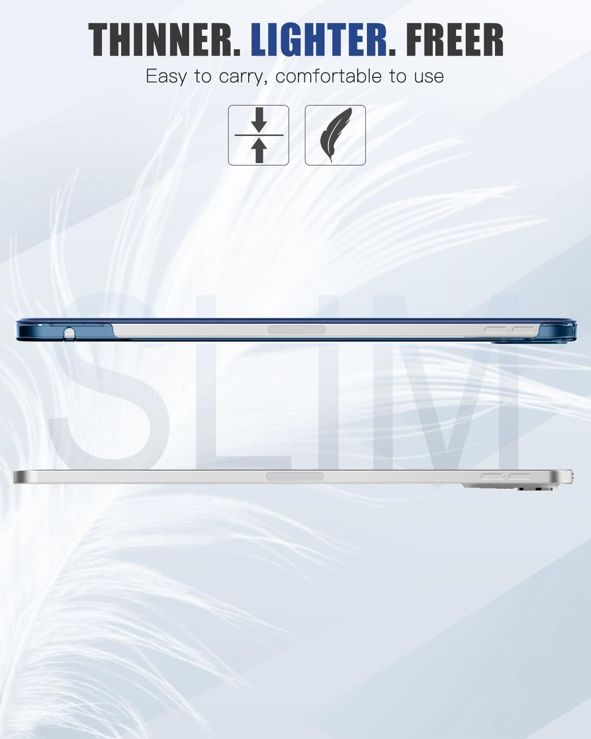 Fabricada com couro PU durável, interior em microfibra macia e capa traseira rígida em policarbonato translúcido fosco. Esta capa oferece proteção eficaz contra riscos, impactos, pó e impressões digitais, mantendo visível o design e os ícones do iPad.