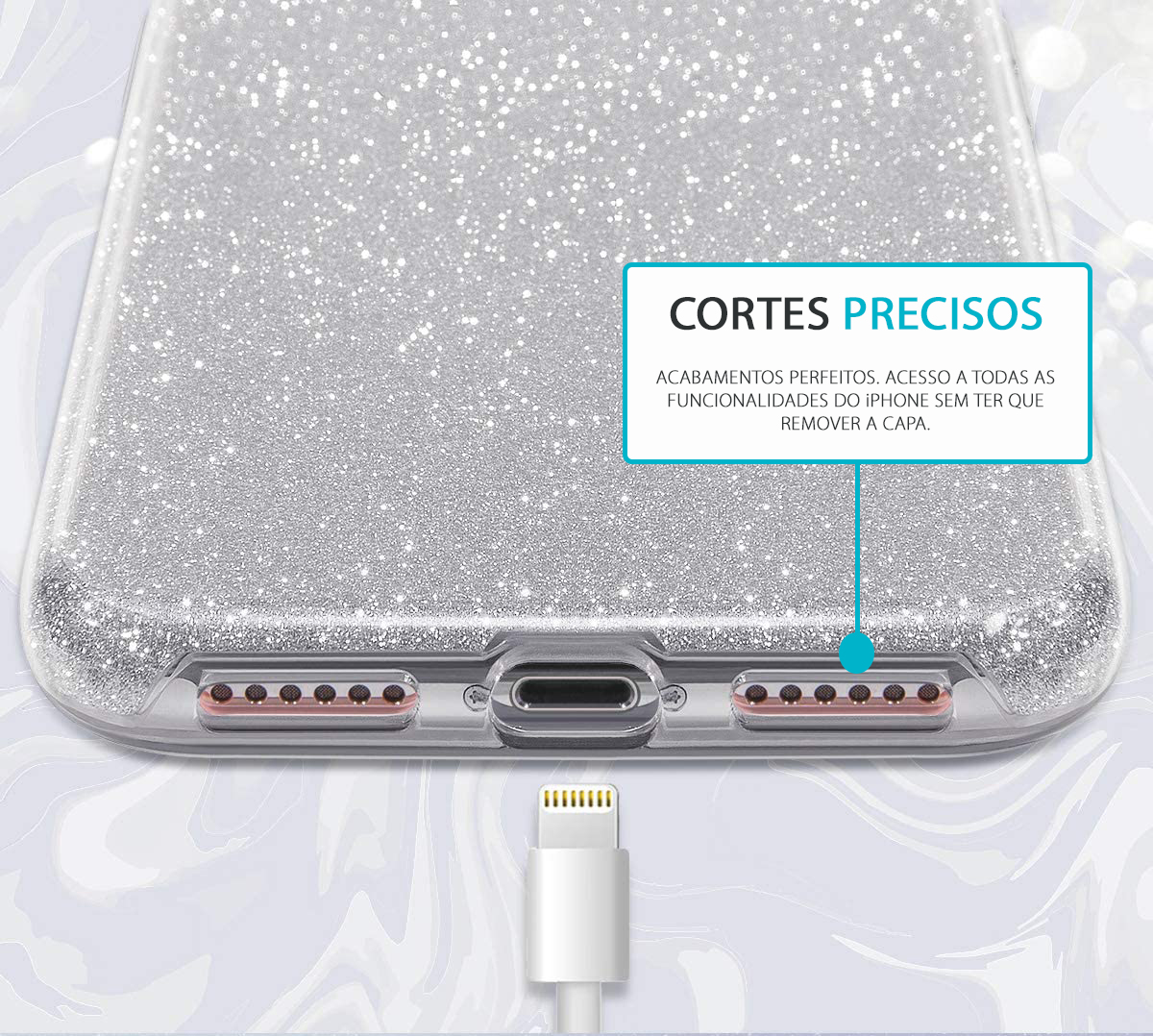 Capa Bling Stylish, fabricada com materiais resistentes de boa qualidade e acabamentos perfeitos que conferem a maior protecção amortecendo o impacto de forma testada em caso de quedas (perceptível ao toque). A qualidade dos materiais resulta também numa longa durabliidade oferecendo uma excelente protecção ao seu iPhone.