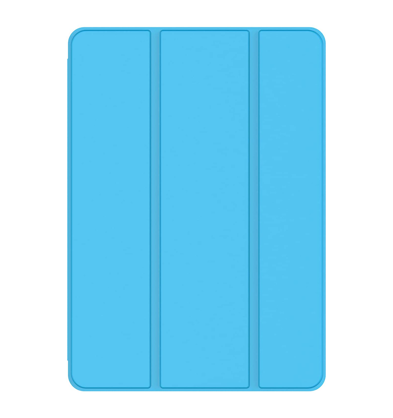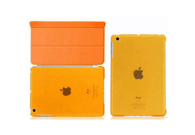 Capa magnética inteligente suporta função automática de hibernar/despertar. A capa frontal (destacável por magnetismo) de três dobras pode suportar o iPad mini em duas posições de pé para visualização e digitação. A capa traseira é rígida e bastante fina.