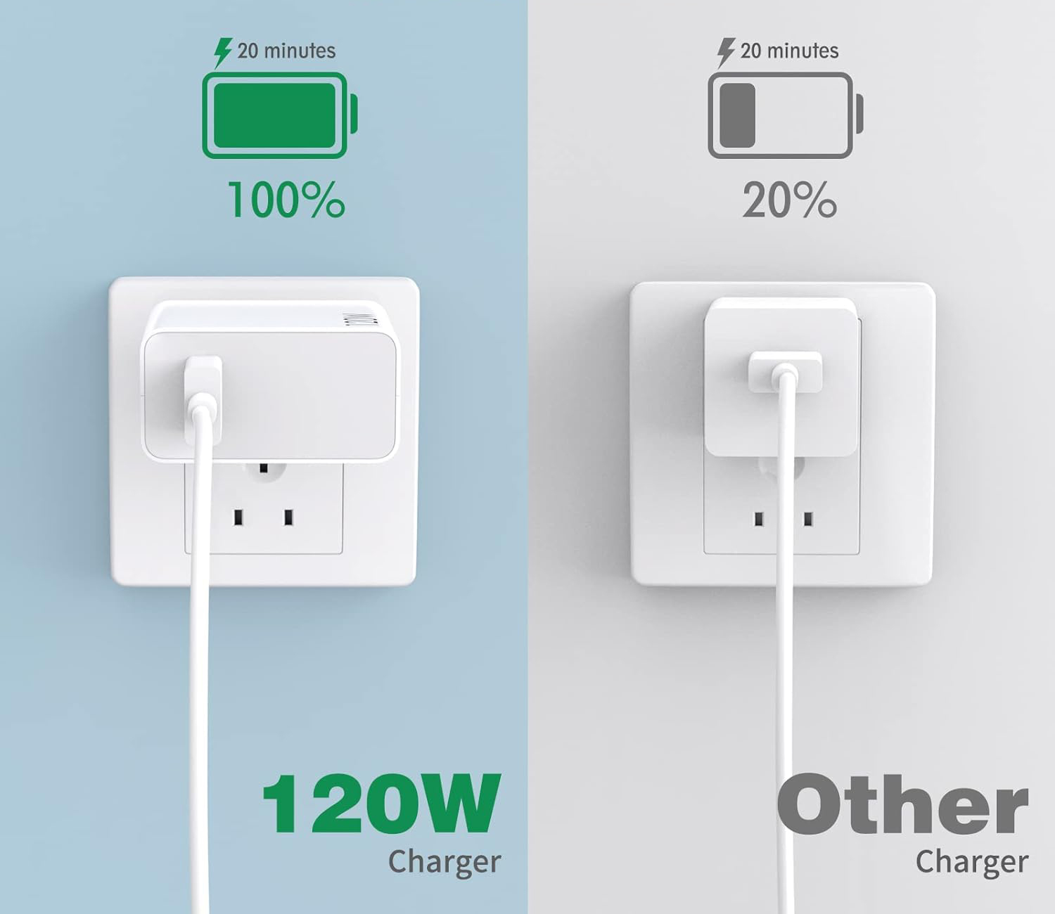 Embora o Xiaomi 120W HyperCharge Combo atinja uma potência de até 120W, e possua um chip de identificação inteligente integrado que atribuirá automaticamente o modo de carregamento. Além disso, permite um controlo inteligente da temperatura que detetará a temperatura e ajustará a potência de saída.