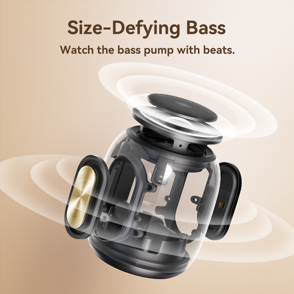 Coluna compacta proporciona áudio em todas as direções, preenchendo qualquer espaço — desde quartos acolhedores até cozinhas movimentadas.