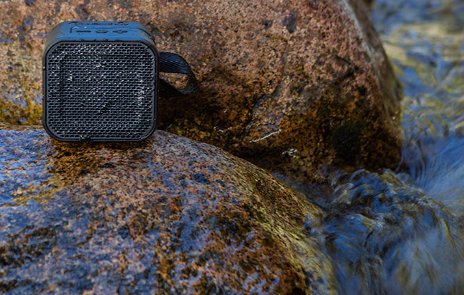 Construcção robusta, resistente a impactos e à água (IPX5), com duração até 6h de bateria e som extremamente potente. Coluna portátil fabricada com materiais de alta qualidade, plenamente sentida ao toque e ao ouvido.