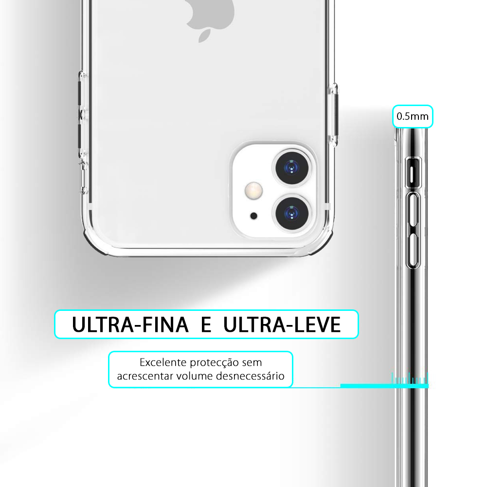 Capa ultra discreta 100% transparente em silicone, com apenas 0.5mm de espessura. Com esta capa poderá proteger o seu iPhone, sem alterar o seu aspecto original e sem acrescentar volume desnecessário.