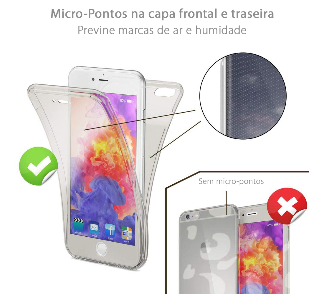 Protecção 2 em 1 para o seu iPhone 6/6S Plus. Capa frontal + capa traseira que tapam e protegem o iPhone na totalidade permitindo ainda assim, o acesso a todos os controlos e funcionalidades. As duas capas encaixam na perfeição entre si, sem quaisquer folgas para uma utilização compacta mesmo em caso de quedas.