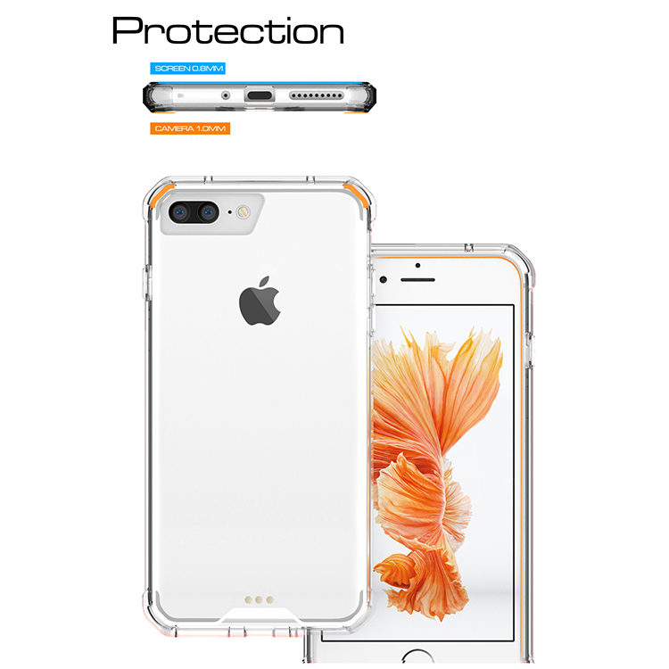 Extrema protecção, com a maior discrição possível com este modelo 100% transparente. Fabricada em silicone rígido resistente de alta qualidade e acabamentos perfeitos que conferem a maior protecção amortecendo o impacto de forma testada em caso de quedas. A qualidade dos materais permite um encaixe justo e seguro ao telefone sem qualquer tipo de folgas, mesmo a longo prazo. A pequena e discreta reentrânica na zona do ecrã permite que ao pousar o seu iPhone 7/8 Plus numa mesa ou outra superfície plana, o contacto seja sempre feito com a capa e não com o ecrã do seu iPhone.