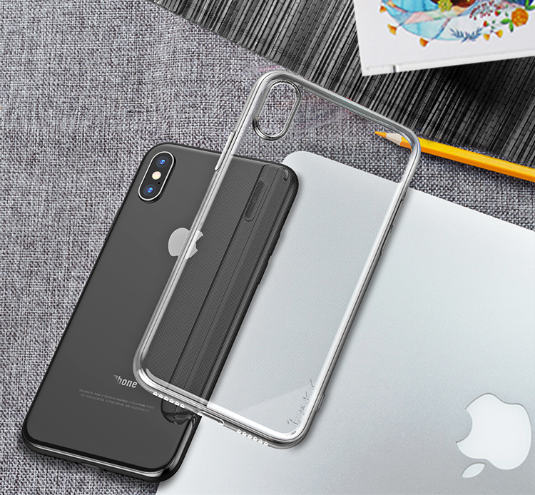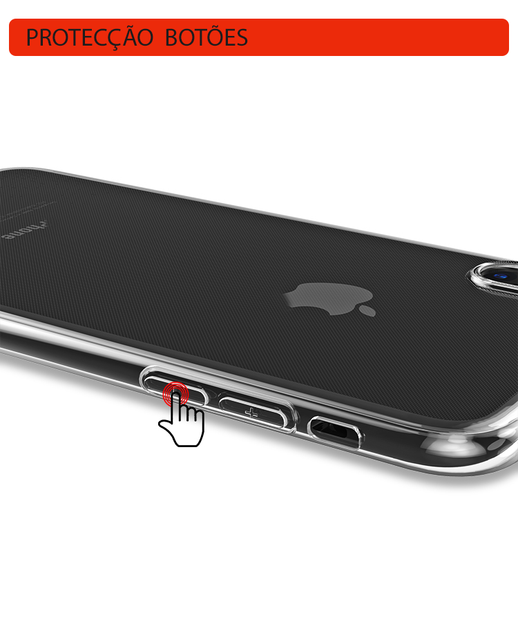 Protecção completa com capa transparente em silicone e protecção em vidro temperado para o ecrã do seu iPhone XS Max.