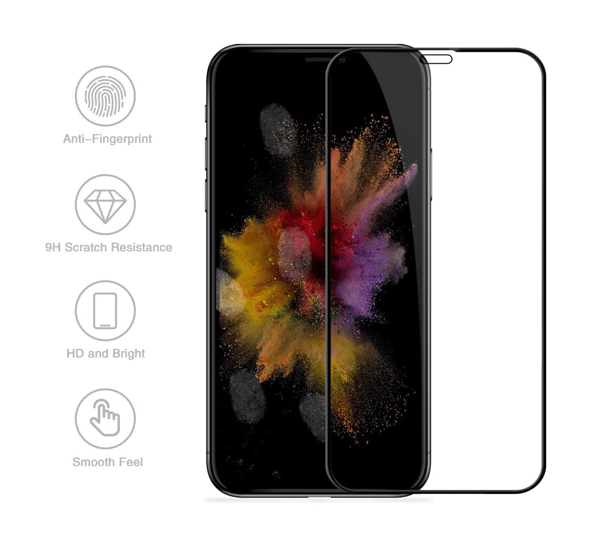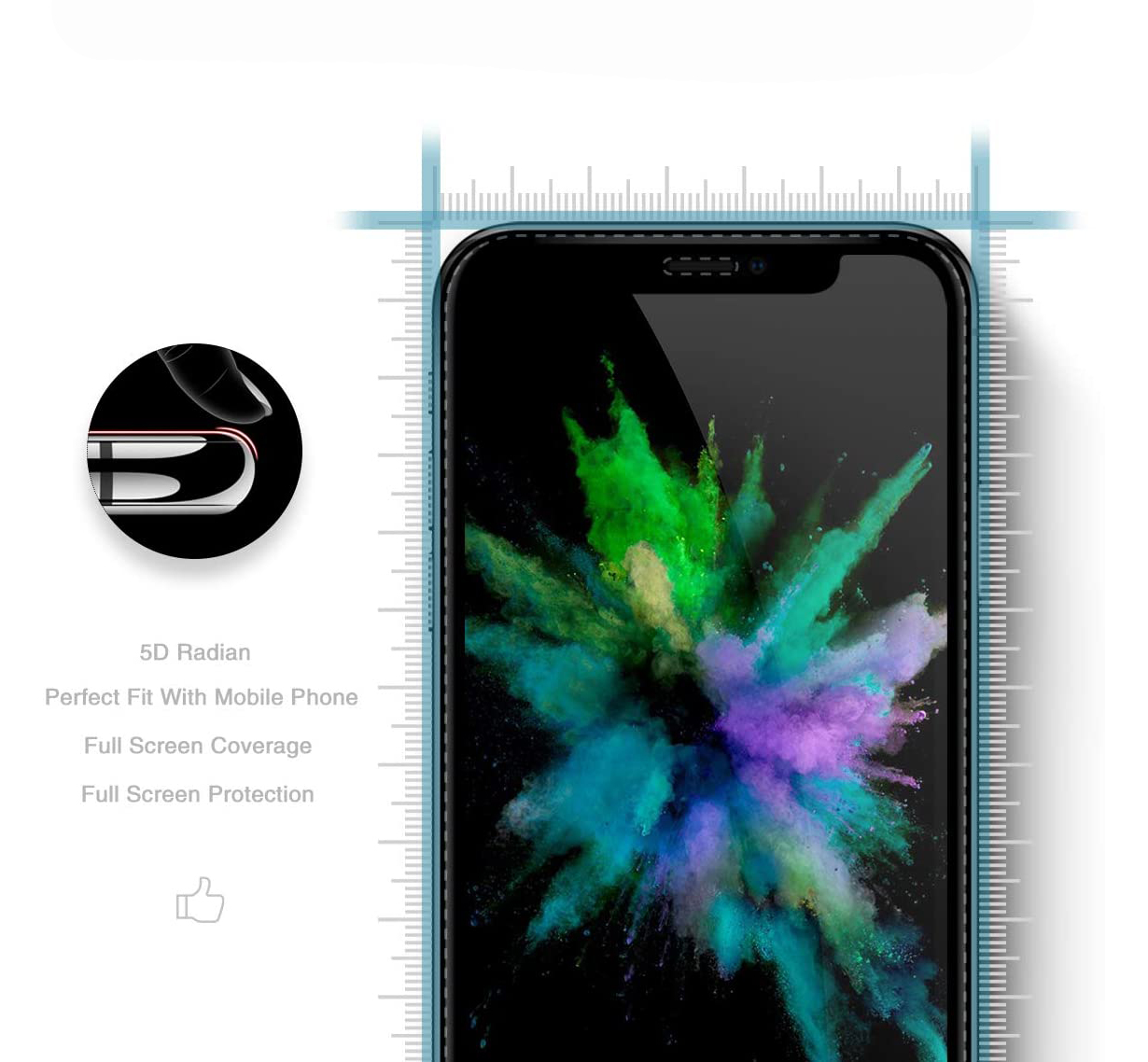 Full Screen tapa o ecrã do iPhone na totalidade, ficando protegido mesmo no aro do display. Ao contrário de alguns modelos em que as extremidades são maleáveis com forte probabilidade de acumulação de lixo, esta é uma película "full-glue". Toda a zona de contacto com o display tem cola para total aderência.