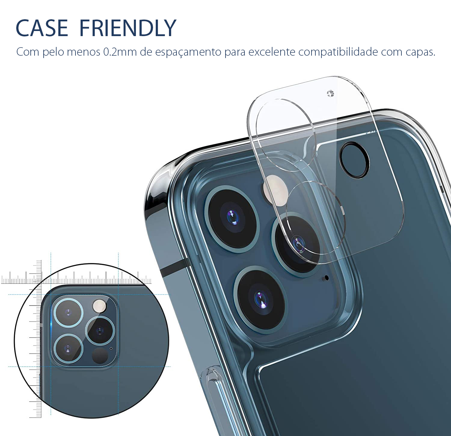 - Protecção para toda a zona (quadrada) da câmara fotográfica