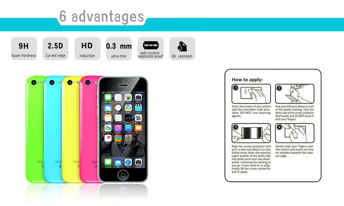 A aplicação destas películas é muito simples, basta centrar a película e deixá-la "cair" sobre o telefone e ficará sem quaisquer bolhas de ar. Veja o vídeo de apresentação na página principal do produto, basta clicar no "Play" no centro da imagem.