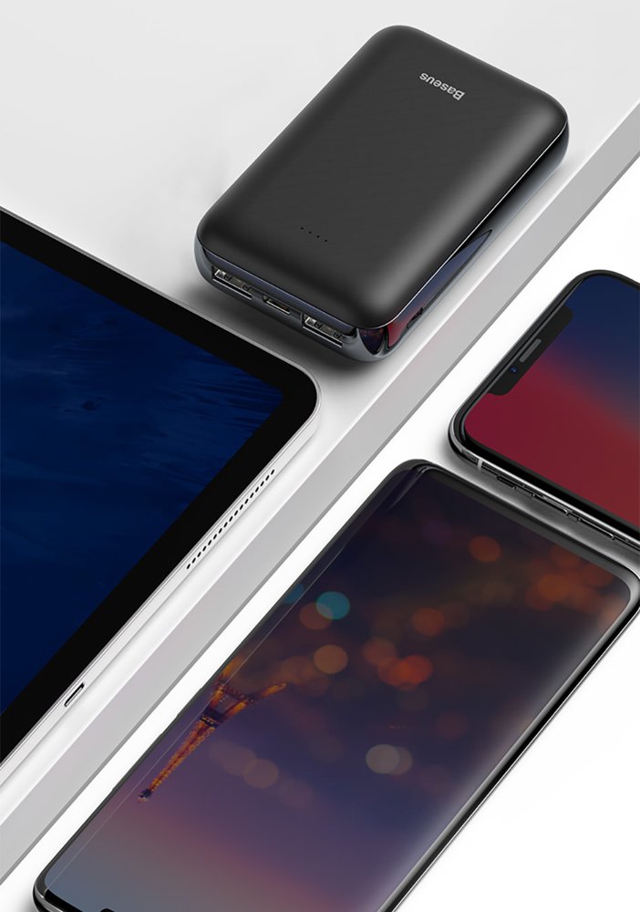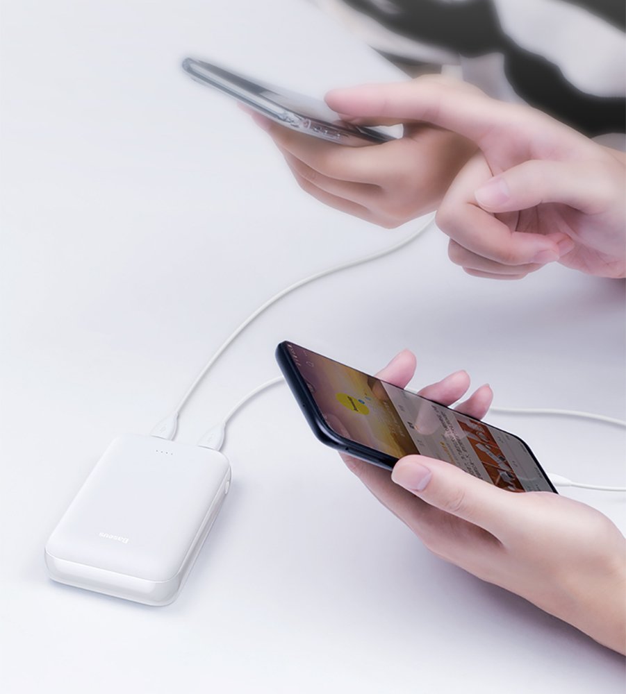 Pequena no tamanho e grande na capacidade (10000mAh). Duas portas de saída USB (permitindo o carregamento de dois equipamentos em simultâneo) e duas portas de entrada (Micro-USB e USB-C).