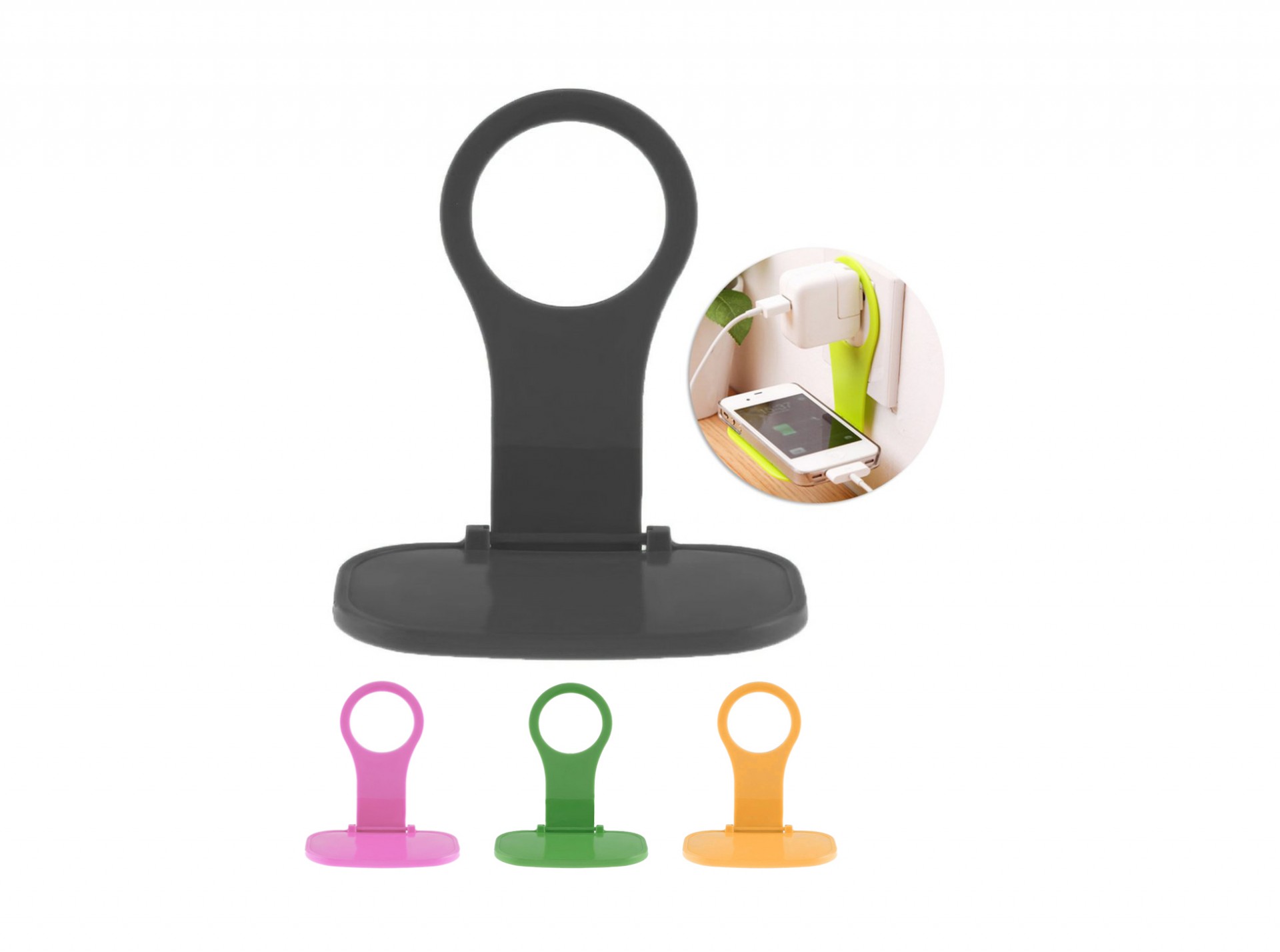 Suporte de tomada universal. Compatível com todos os modelos de iPhone, iPod e Apple Watch.