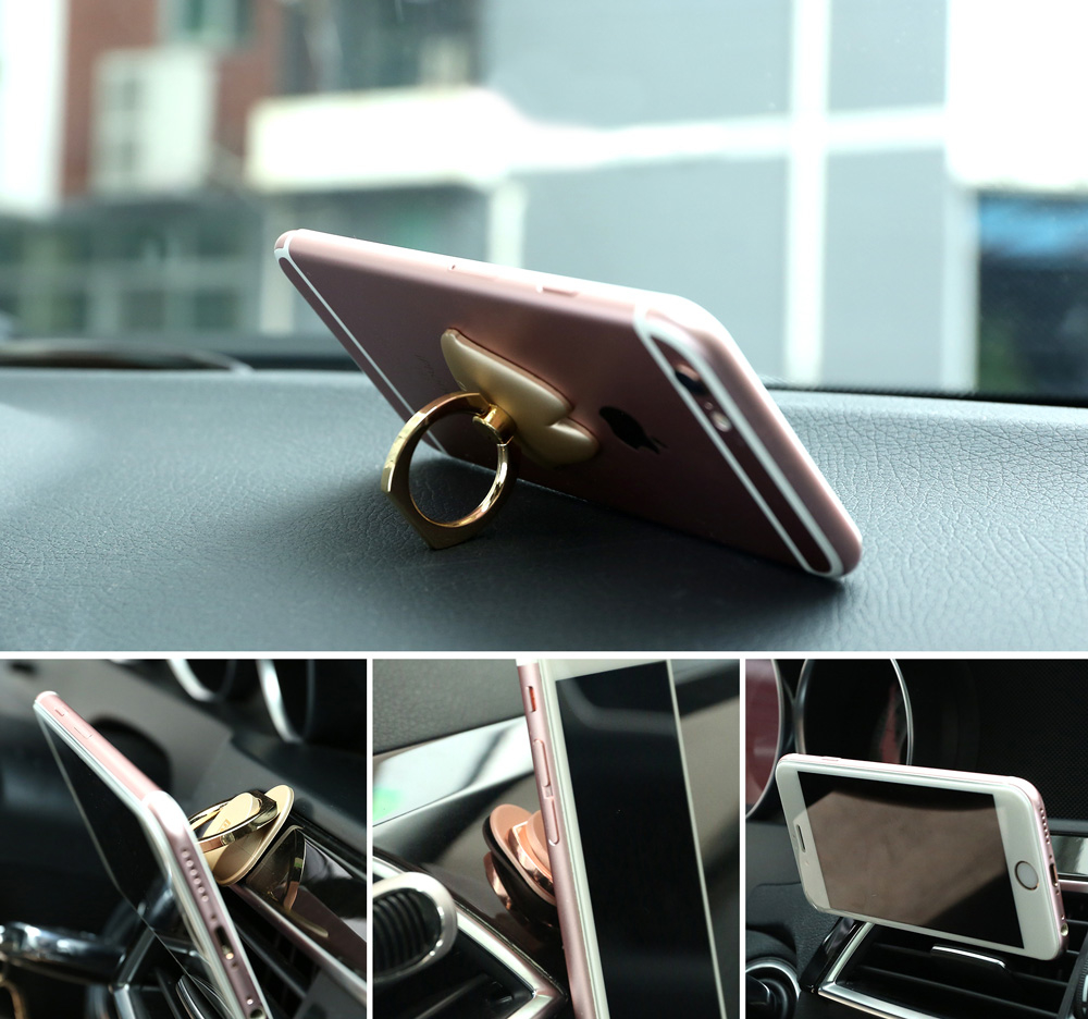 Também pode ser usado como um suporte de telefone do carro (ver imagens) ou simples suporte de secretária. O anel de aperto pode ser usado na direção horizontal (360 graus) ou vertical (180 graus). É reutilizável, pode ser lavado com água limpa para restaurar a adesividade forte.